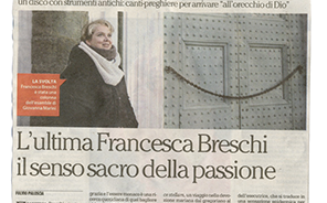 La Repubblica, giovedì, 1 dicembre 2016 L'ultima Francesca Breschiil senso sacro della passione L’artista. Dall’incontro con i monaci benedettini di San Miniato al Monte un disco con strumenti antichi: canti-preghiere per arrivare “all’orecchio di Dio”. L’ultima Francesca Breschiil senso sacro della passione (di Fulvio Paloscia) Francesca Breschi, cantante militante (anche in senso politico), colonna dell’ensemble di Giovanna Marini (e per molti sua erede) ha sempre rivolto la propria curiosità al sacro. La musica d’estrazione popolare l’ha aiutata, ma è stato determinante l’incontro con i monaci benedettini olivetani di San Miniato al Monte, il loro “amare le cose del mondo “ut in omnibus glorificetur Deus”, “attraverso ogni cosa glorificare Dio” significa che la fede è una grazia e l’essere monaco è una ricerca quotidiana di quel bagliore abbagliante intravisto per un istante e nel quale si sono sentiti invadere dall’Amore totale e totalizzante di Cristo”, spiega la Breschi. Ulteriore scintilla: l’identificazione che i benedettini fanno della preghiera con il canto. Dall’esperienza di “oblata” della comunità sul colle fiorentino - ovvero l’adesione secolare alla regola di San Benedetto, “ad una vita contemplativa in cui anche il alvoro diventa preghiera”, senza abdicare alle proprie idee - è nato il progetto discografico Respice stellam, un viaggio nella devozione mariana dal gregoriano al XV secolo che segna un approdo fondamentale nella storia dell’artista fiorentina. Storia contrassegnata da allontanametni e riavvicinamenti alla tradizione popolare, da un nomadismo delle idee che l’ha portata a lambire addirittura il pop. In questi canti alla Vergine - si va dal Laudario di Cortona alle Cantigas di Santa Maria al Llibre Vermeill - tutto sembra “compiersi” (compreso l’approdo ad un’identità definitiva seppure “diffusa”) ed esplodere nella partecipazione emotiva dell’esecutrice, che si traduce in una sensazione epidermica per l’ascoltatore, in un’autentica “esperienza” oltre la fruizione. Il tramite è la semplicità della passione con sui la Breschi offre queste pagine antiche cercando, e trovando, la soavità necessaria per arrivare prima di tutto “all’orecchio di Dio”. Accompagnata dagli strumenti d’epoca dell’Ensemble Dialogo e dagli stessi monaci di San Miniato al Monte, Breschi affida tutto il suo essere a questi cantiàpreghiere. L’essere ne vibra. Si fida. Il suo. E il nostro. (Foto di Mariangela Montanari) _______________________________________________ Articolo 2 _______________________________________________ Articolo 3 _______________________________________________